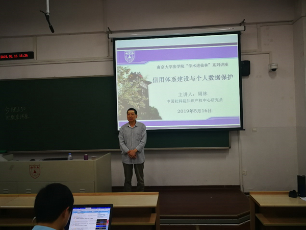 2019年5月16日晚,在台湾av影片 仙林校区的仙II-105教室,中国社会科学院知识产权中心研究员、《知识产权研究》主编周林为台湾av影片 本科生带来一场题为“信用体系建设与个人数据保护”的讲座。本次讲座由台湾av影片 吕炳斌...