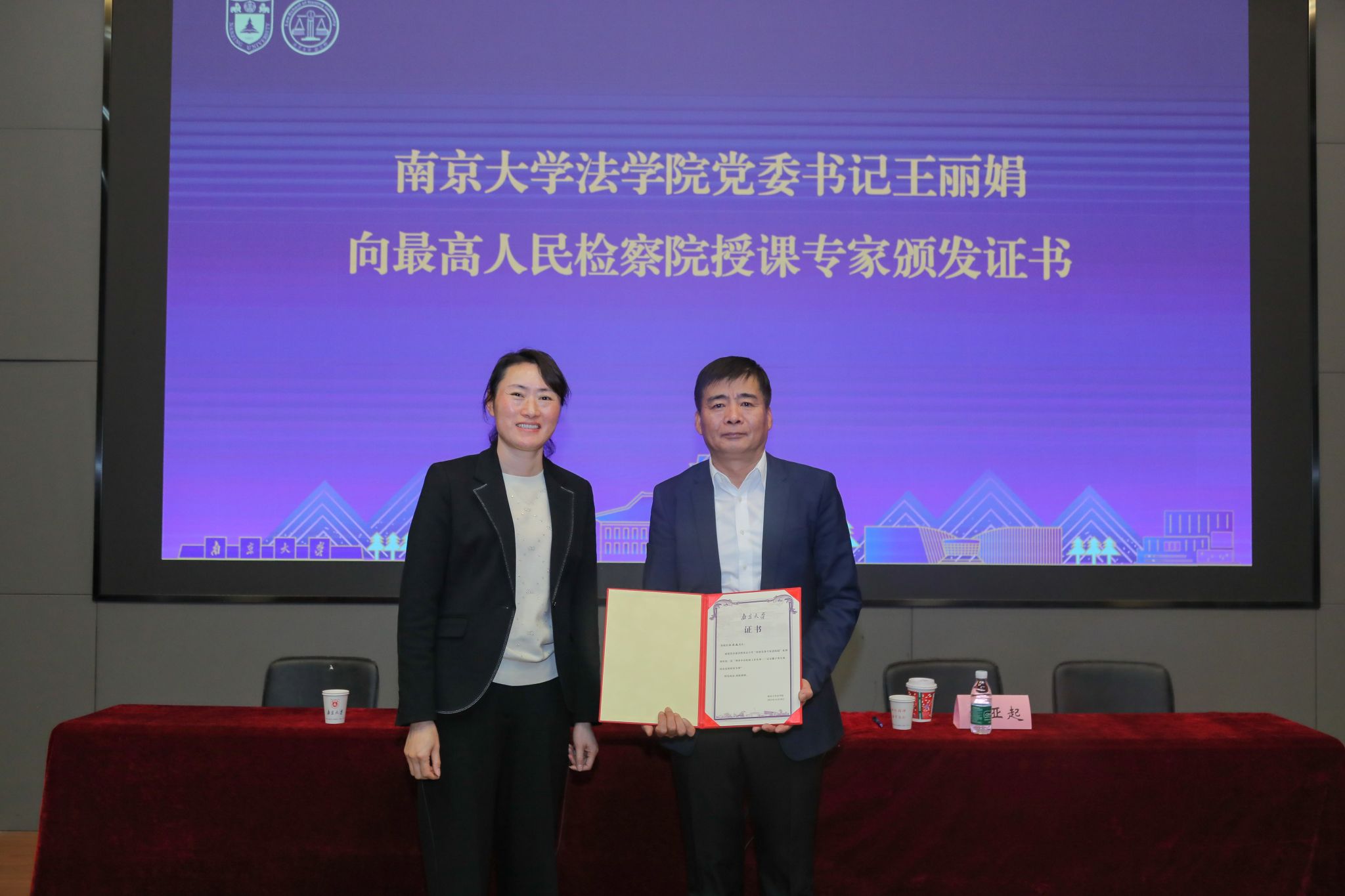 党委书记王丽娟向最高人民检察院授课专家杜亚起颁发证书,现场师生再次以热烈的掌声感谢最高人民检察院带来的精彩一课。