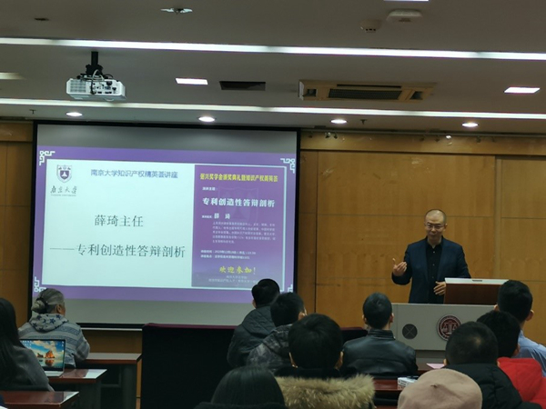 知识产权菁英汇讲座,讲座开始前徐棣枫教授以与薛琦主任相识经过引出了对薛琦律师的介绍,上海弼兴律师事务所主任薛琦律师为大家做了题为“专利创造性答辩剖析”的讲座。