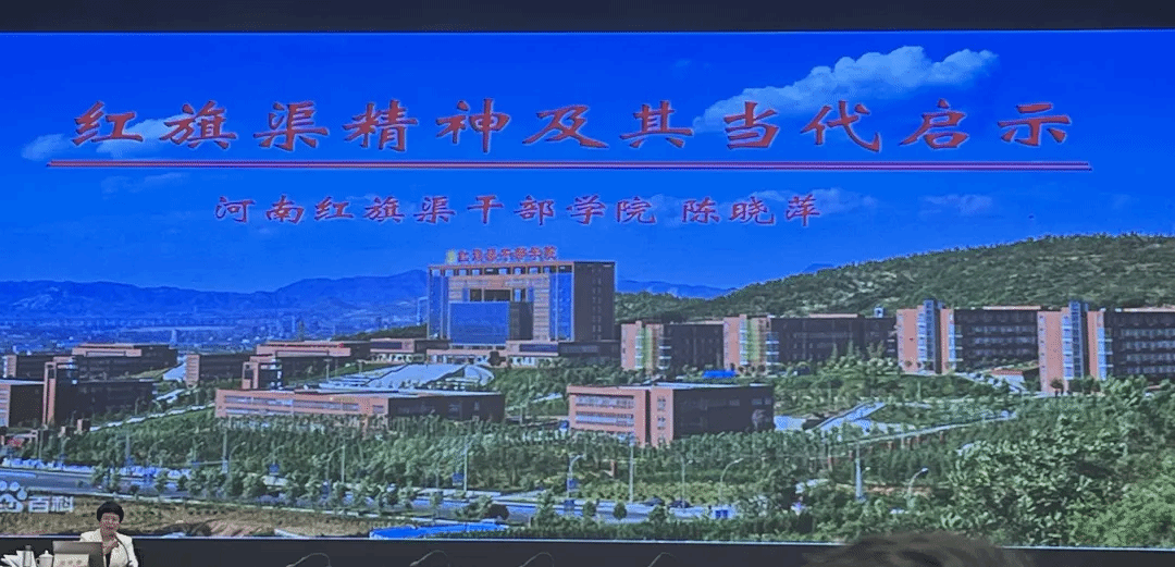 在《红旗渠精神及其当代启示》专题讲座上,红旗渠干部学院副院长陈晓萍同志从“为什么一条渠能够成为世界奇迹”这一问题出发,讲述了红旗渠的修建背景和辉煌成就,引导学员感悟红旗渠精神的深刻内涵,并启发学员认真思考红旗渠精神在新时代的新定位、新发展。