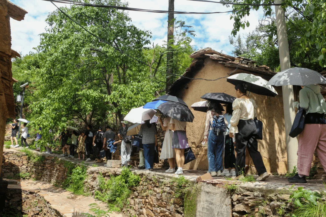 学员们走访了朝阳村老村落,看到泥土为墙、石板为顶的老房子,干净整洁的小道,满山的翠绿,挂满果的梨树、枣树、核桃树和花椒遍布房前屋后,与旧日旱荒遍野的林县形成鲜明对比。穷困山村向最美山村的嬗变,既得益于红旗渠的成功修建,也得益于“两山”理论的真正落地。