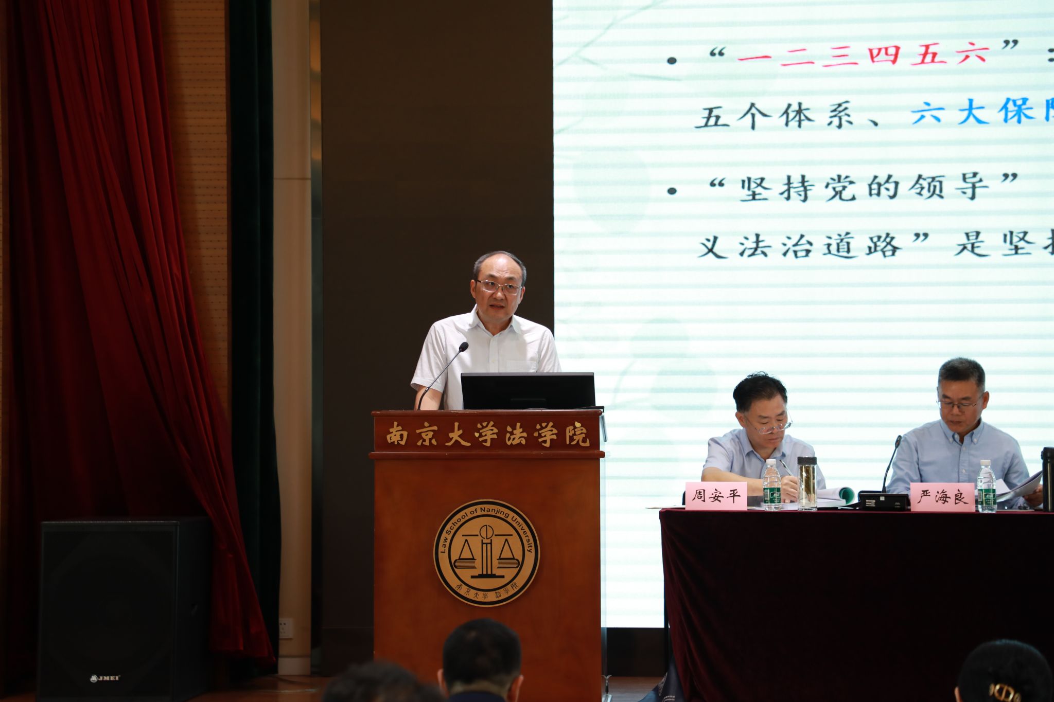 副院长、教授上官丕亮以《法律适用中的宪法全面实施》为题作主题报告。