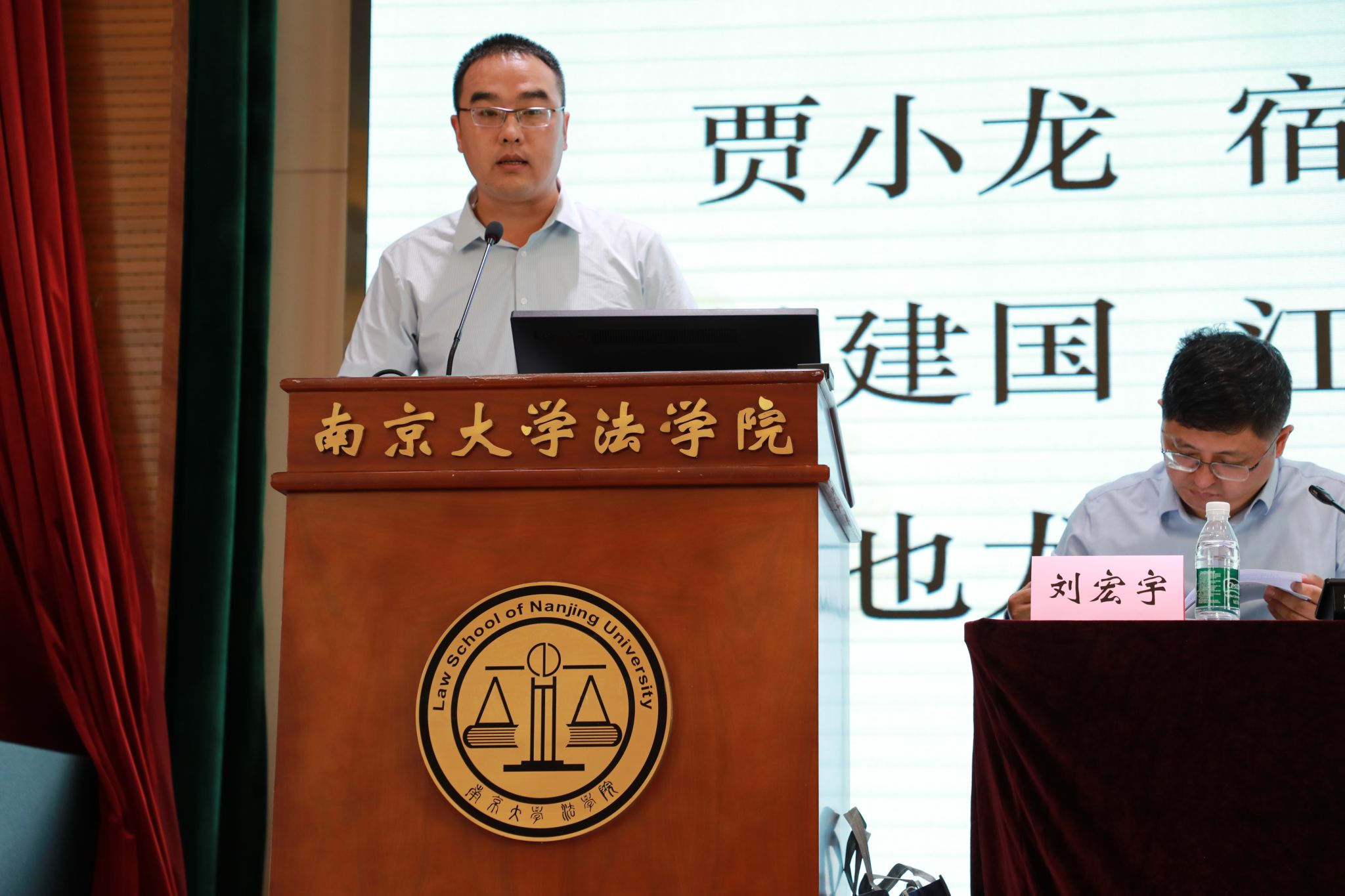 江苏省法学会研究处处长吕复栋宣读省法学会批复。