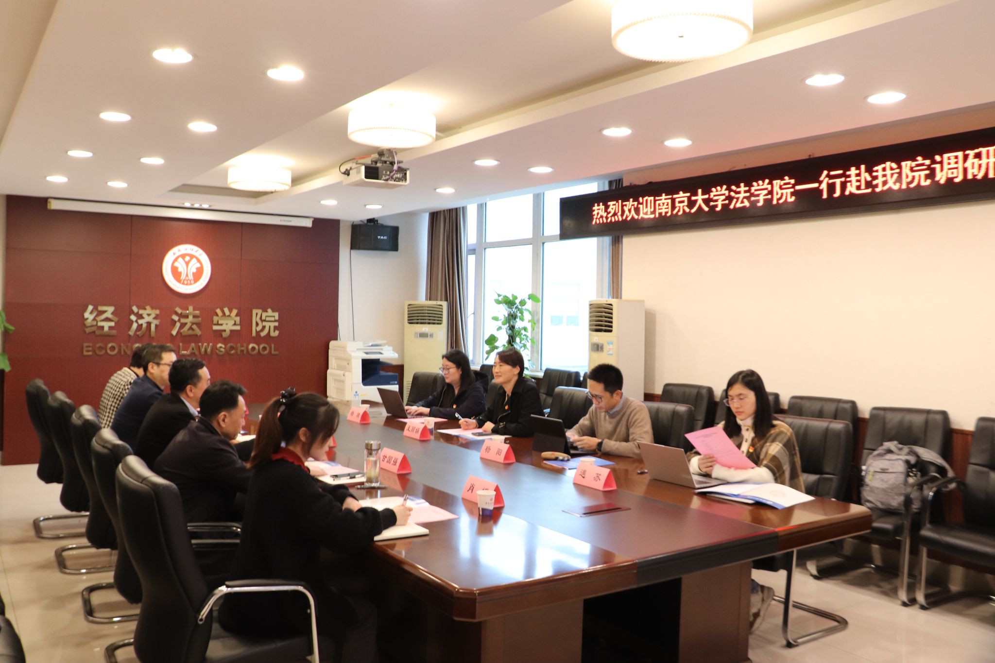 整体情况和学院党委在数字党建平台构建、党政思政队伍建设、涉外法治人才培养等方面的工作经验与成效。围绕党建业务深度融合、党建“双创”经验做法、党建品牌纵深打造等主题,调研组与参会人员开展了深度交流,对下一步加强校院交流合作、建立常态化长效化党建工作联络机制提出了意见建议。