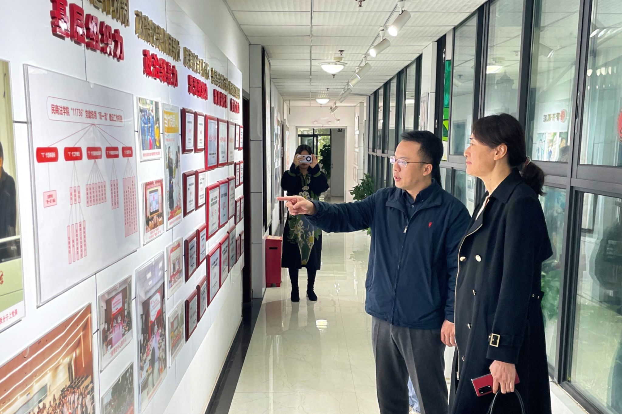 )的党建工作墙,详细了解了两院党建思政、学科建设、师资队伍、人才培养等方面的发展情况。