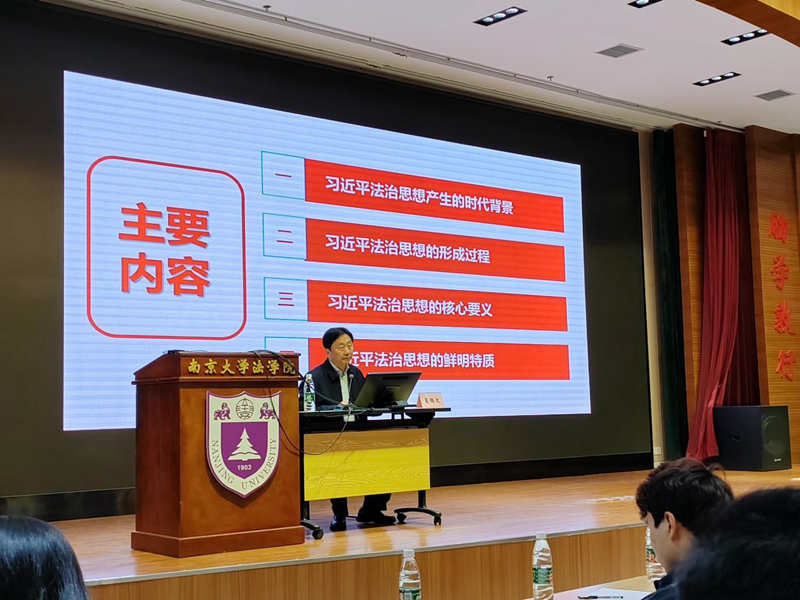 夏锦文指出,习近平法治思想深刻总结古今中外治国理政的历史经验和教训,全面阐述当代中国推进全面依法治国的重要性,系统回答法治为实现党和国家长治久安、长远发展的制度保障,科学论证法治是人类文明的重要成果和理性选择,具有很强的历史逻辑、实践逻辑、制度逻辑、理论逻辑,是马克思主义法治理论中国化最新成果和习近平新时代中国特色社会主义思想的重要组成部分。