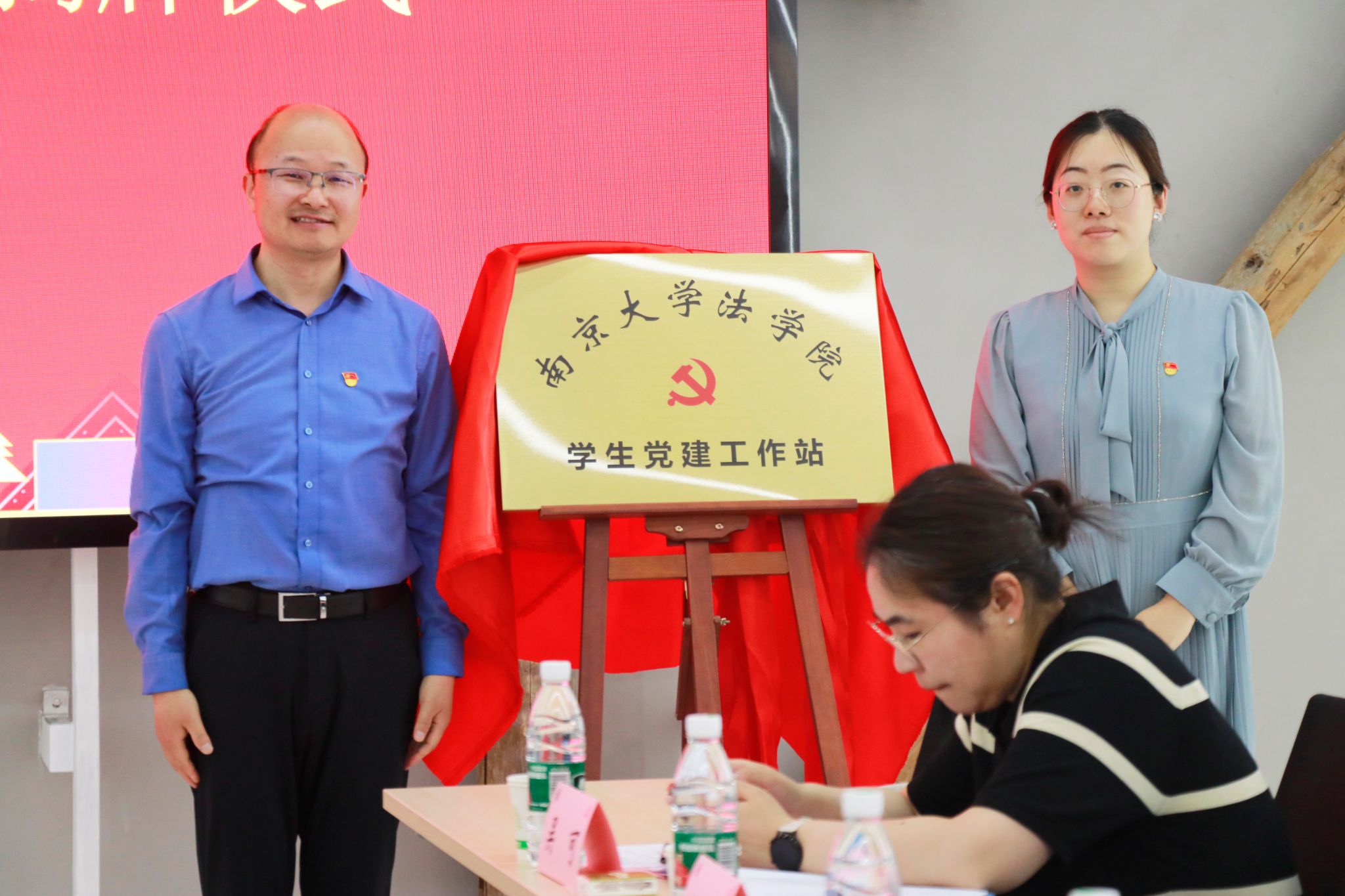 法学院党委书记蒋恩铭从班子政治建设、组织体系创新、“一融双高”实效及辐射协同示范等方面系统汇报了法学院“全国党建工作标杆院系”中期建设成效,法学院党委副书记马骏汇报了法学院学生党建工作站的建设情况,学院在原有学生党建组织的基础上统筹成立法学院学生党建工作站,以推动学生党建工作规范发展、长效提升。蒋恩铭、范赟共同为法学院学生党建工作站揭牌。