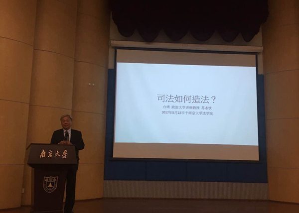 2017年5月,受南京大学法学院邀请,台湾政治大学法学院苏永钦教授莅临我院讲学。苏教授毕业于台湾大学,后赴德国留学,在德国慕尼黑大学获得法学博士学位。曾担任国立政治大学法律系教授、法学院院长兼法律系主任,台...