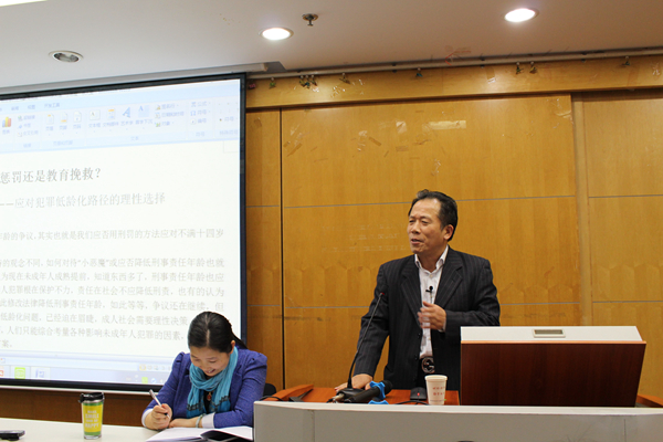 讲座围绕近期发生的“大连‘小恶魔’杀人案”展开。未成年人合法权益如何保护?未成年人犯罪如何预防?前期不良行为如何矫治?是否有必要降低刑事责任年龄?……就此案件为契机,一时间,社会各界争论不断。尤其是有关应否降低刑事责任年龄的争议,其实也就是应否用刑罚的方法应对不满十四岁未成年人的严重触法行为。因看问题的角度以及所持的观念不同,出现了截然不同的两种观点,即主张降低和不主张降低。