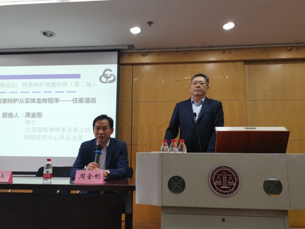 2019年10月26日,南京大学犯罪预防与控制研究所刑事辩护研究中心第二届刑辩经纬论坛在南京大学法学院顺利召开。南京大学法学院副院长宋晓为开幕式致辞。中央民族大学法学院院长韩轶、南京大学法学院教授孙国祥、南京大学犯罪预防与控制研究所所长、法学院教授狄小华、江苏瑞格律师事务所主任、刑辩研究中心执行主任周金刚、北京市尚公(南京)律师事务所主任、刑辩研究中心副主任孙国强、北京市尚公(南京)律师事务所高级合伙人蔡栋、南京森林警察学院闾刚副教授在论坛主持、作主题报告或与谈。