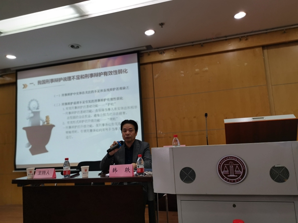 中央民族大学法学院院长韩轶教授以“刑事辩护说理性之提倡和有效刑事辩护的实现”为题作主题报告。韩轶教授首先对我国刑事辩护说理不足和有效性弱化的现象及其背后的原因进行了分析。他指出长期以来我国刑事辩护更偏重经验的总结,而忽视了整体的体系化建构,淡化了理论的底蕴。针对这一现象,韩轶教授点出了两个关键词,即“说理”和“有效”。刑事辩护的感性经验应该提升至理性框架,通过增强刑事辩护的说理性从而提高有效性。随后,韩轶教授阐述了刑事辩护提升说理性的具体途径,包括准确解读法条关键词和司法解释;灵活援引指导性案例、典型案例;剖析规范刑法学的理论冲突背后的法理等。韩轶教授强调,提升说理性是手段,提升有效性才是最终目标,即为当事人在法律范围内争取合法权益的最大化。这要求刑辩律师掌握法律技能、沟通技能、证据技能、其他专业技能并且兼顾情理。有效的刑事辩护应当实现对当事人实体和程序层面的合法权益的保护,避免公权力的非法侵害。在此基础上,当刑事诉讼出现纰漏或者模糊地带时,有效刑事辩护应当引领刑事诉讼向有利于当事人合法权益的方向进行。