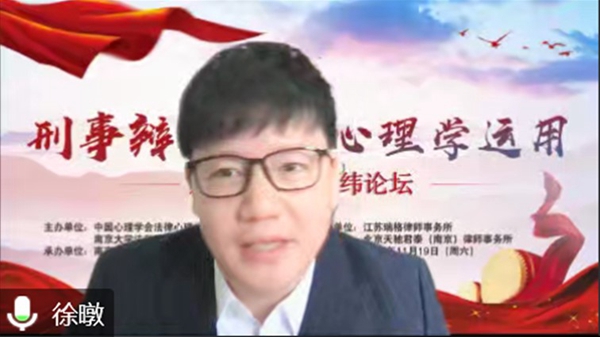 本单元由中国人民公安大学教授、中国心理学会法律心理学专业委员会理事赵桂芬博士主持。北京天驰君泰(上海)律师事务所合伙人王盈律师,江苏瑞格律师事务所合伙人蒋珩律师进行发言报告。江苏大学法学院讲师吴进娥博士,北京市尚公(南京)律师事务所权益合伙人、监事会主席蔡栋律师围绕报告内容与谈交流。