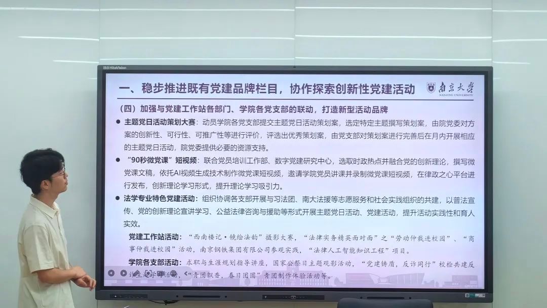 会上,法学院团委、学生会、研究生会和党建工作站各职能部门负责人依次进行工作汇报,总结上一学年工作经验,梳理部门常态化工作和品牌项目,分析工作难点并提出创新性工作设想。
