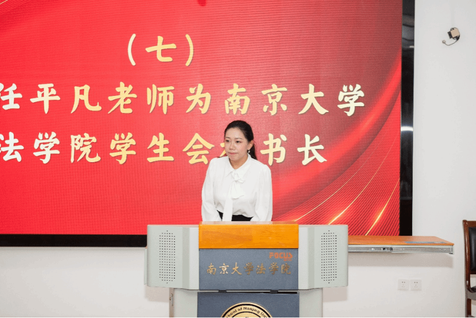随后,由法学院学生会执行主席陶奕涵同学代表法学院学生会宣布,根据全国学生联合会章程的规定,经南京大学法学院党委、团委批准,聘任平凡老师为南京大学法学院学生会秘书长。