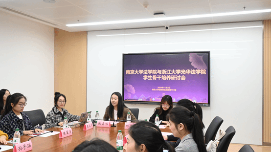 为深入贯彻落实习近平总书记关于青年工作重要思想,进一步促进学生骨干之间交流与理解,南京大学法学院学生代表与浙江大学光华法学院调研组于2024年11月2日下午在鼓楼校区西南楼103室召开学生骨干培养研讨会。会议由我院研究生曹玉笛主持。