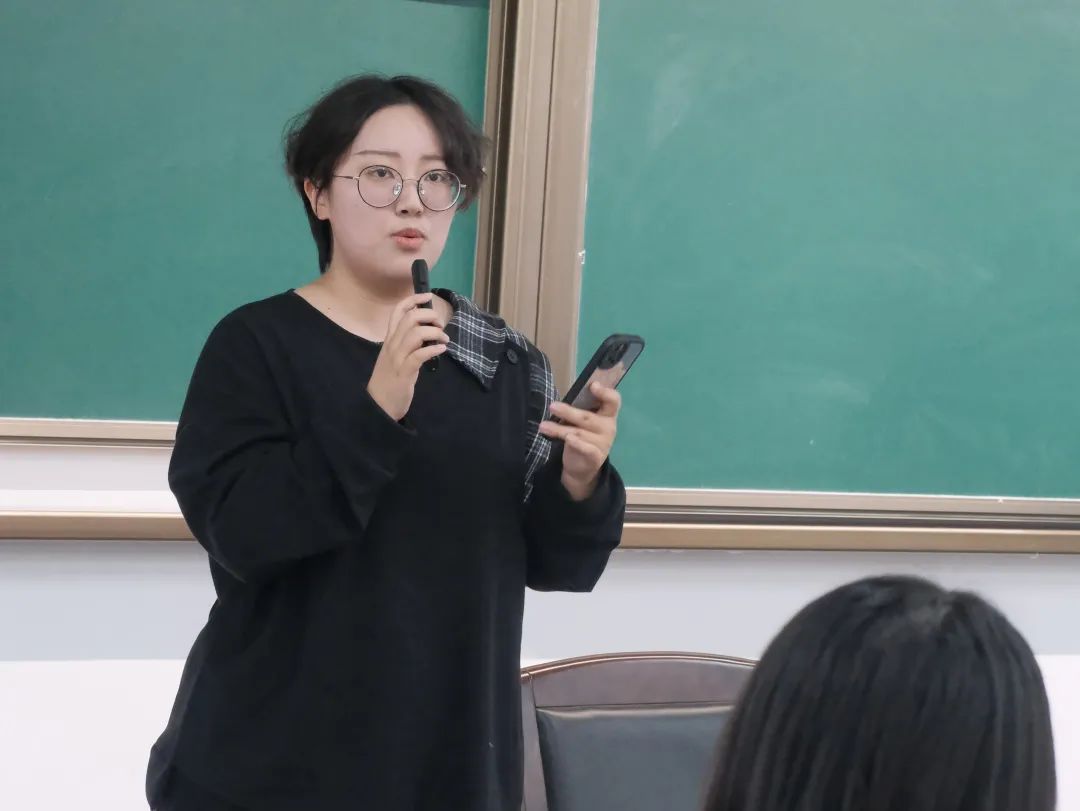 高嘉悦同学分享了自己在学生工作中产生的感受。她曾在各级团学组织的多个岗位上服务同学,尤其在志愿公益领域有所深度参与,以实际行动践行了志愿者精神。她号召同学们广泛探索自己的兴趣与特长,在各自的领域内精益求精、深入耕耘。