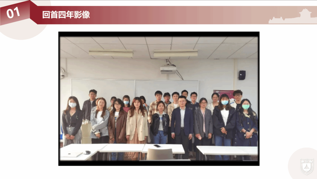 活动伊始,本科四年级团总支书记殷逸洲同学播放了由班委制作的2020级班集体纪念影像视频,带领大家回顾了四年本科生活的点点滴滴,将本次班会引入了毕业季的氛围中。