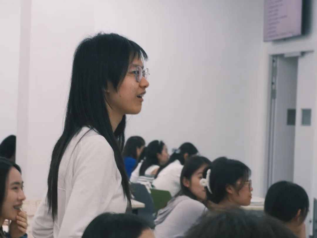 应恩如同学讲述了自己在未来规划过程中的心得体会。站在升学与择业的岔路口,她与许多同学一样,一度感到焦虑与困惑,但逐渐地她发现前方的路不止一条,人生有着多种多样的可能性,她也祝福大家可以达到自己想前往的彼岸。