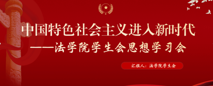 为紧随党的步伐,法学院学生会召开“青春心向党,奋进新时代”、“中国特色社会主义进入新时代”两期思想学习会,提升了学生会成员的思想觉悟与工作能力。