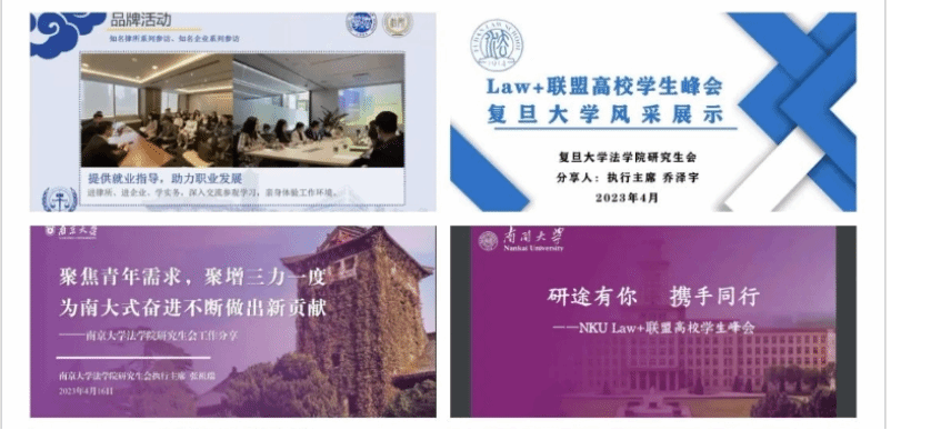 南京大学法学院研究生会受邀参加北京大学法学院2023年“研途有你,携手同行”“law+”联盟高校学生峰会。会上,南京大学法学院研究生会以“聚焦青年需求,聚增三力一度——为南大式奋进不断做出新贡献”为主题,围绕“深化研究生会组织改革、举办丰富多彩的品牌活动、全心全意服务研究生同学”的经验与做法进行风采展示,展现了南京大学法学院扎实落实奋进行动的全新格局与焕然风貌。