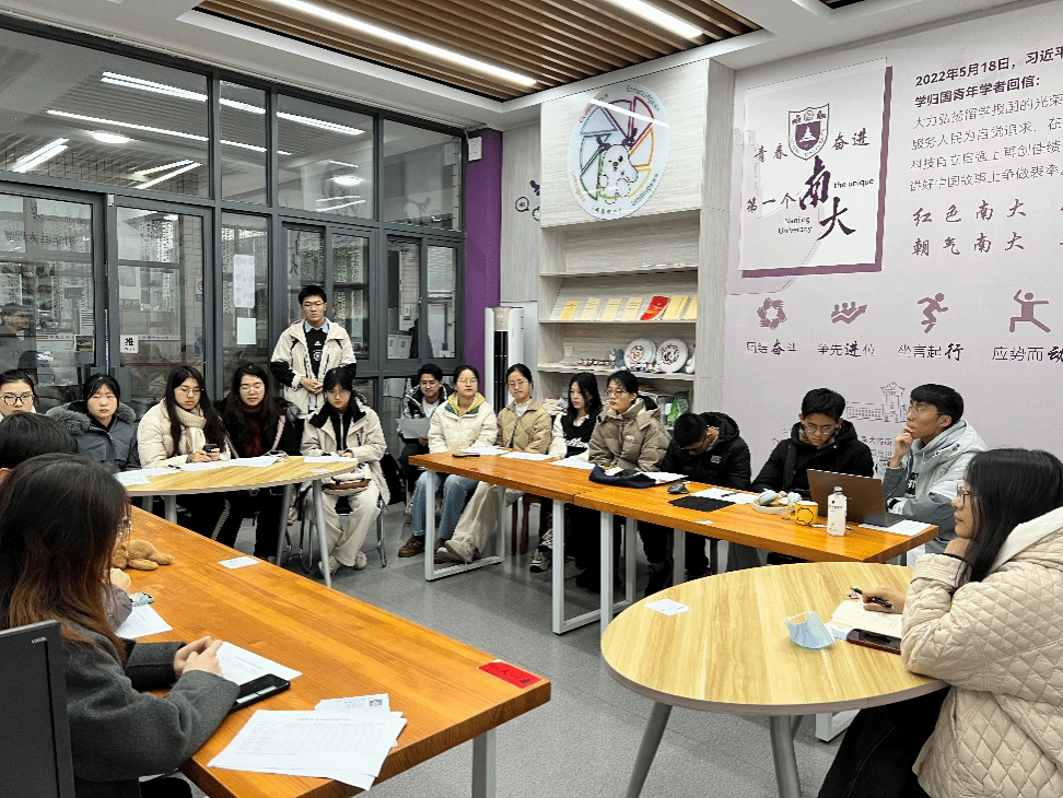 为更好发挥大学生自我服务、自我管理、自我教育作用,推动构建新时代“德法兼修”法治人才成长体系,发挥学生干部引领作用,2023年12月15日中午,法学院本科生2022级在学生社区3栋南青格庐召开班团学生干部学期总结会,全面总结交流工作经验,进一步提升年级治理运行效能。辅导员路敏玥老师主持会议。