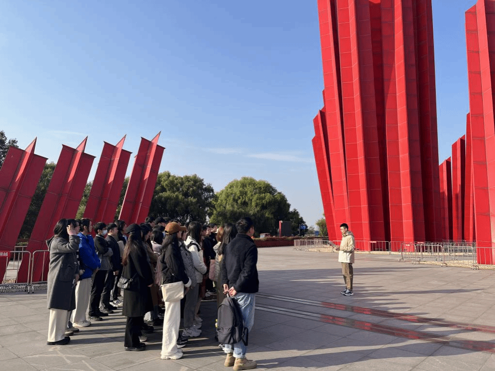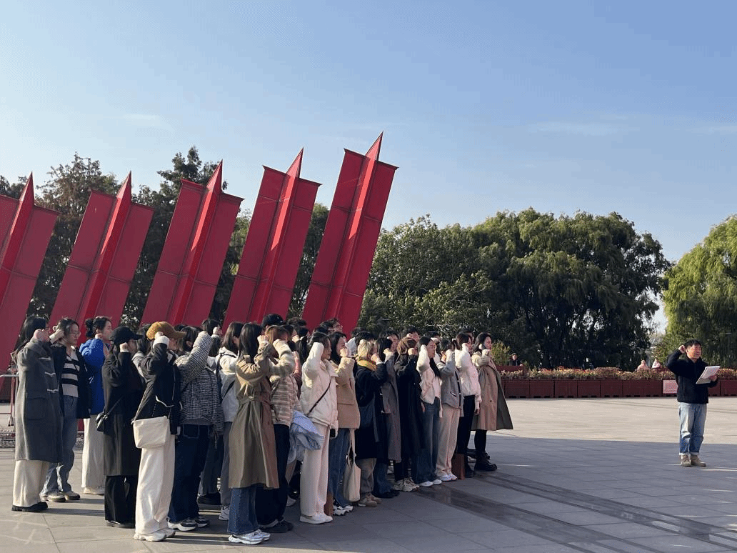 之后,同学前往胜利广场开展活动,由褚振宇领诵,全体同学齐诵《七律·人民解放军占领南京》,领略“钟山风雨起苍黄,百万雄师过大江”的英勇气势,“虎踞龙盘今胜昔,天翻地覆慨而慷”的革命气概。