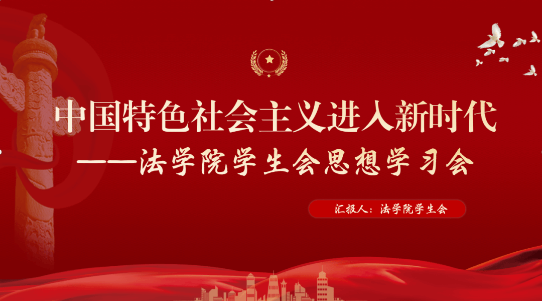 为深入学习中国特色社会主义思想体系,引导全体法学院学生会成员将“中国特色社会主义进入新时代”积极应用于实践,11月1日,南京大学法学院学生会以线上方式召开了“中国特色社会主义进入新时代”主题思想学习会议。本次思想学习会由法学院综合事务中心主任钱悦同学主持会议,法学院学生会全体成员参加学习。