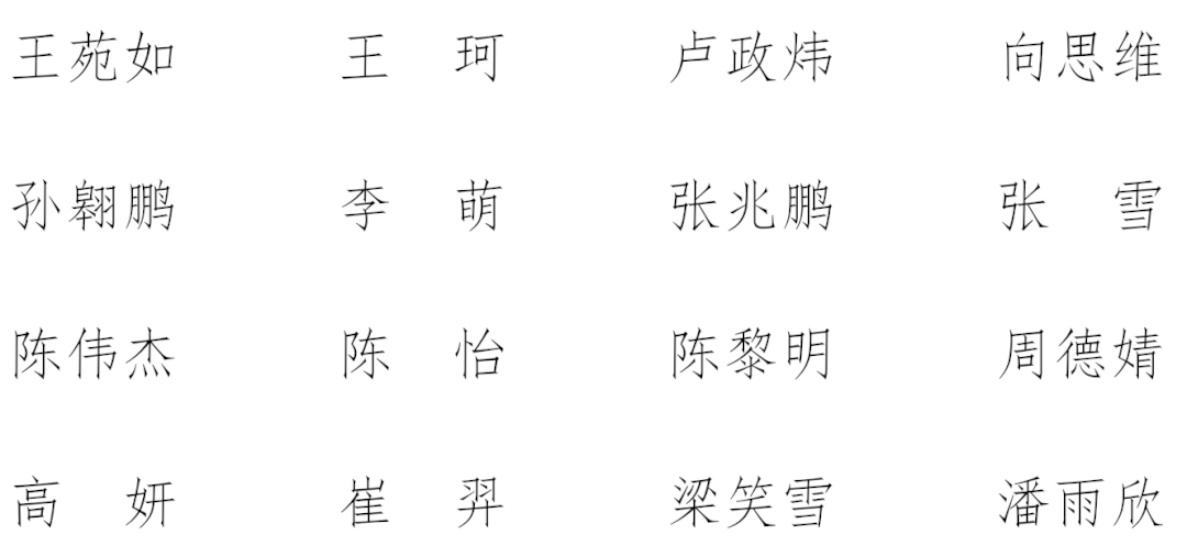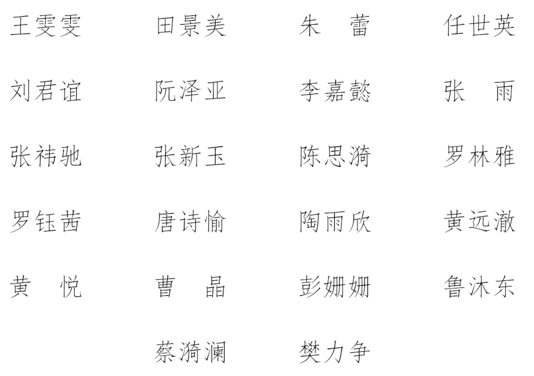 为深入学习贯彻党的二十大精神,全面落实习近平总书记给南京大学留学归国青年学者的重要回信精神,扎实推进“奋进行动”,经自愿申请报名、资格审查、部门面试等环节,2023-2024学年法学院研究生会各中心招新工作顺利完成,以下为志愿工作者招新选拔结果: