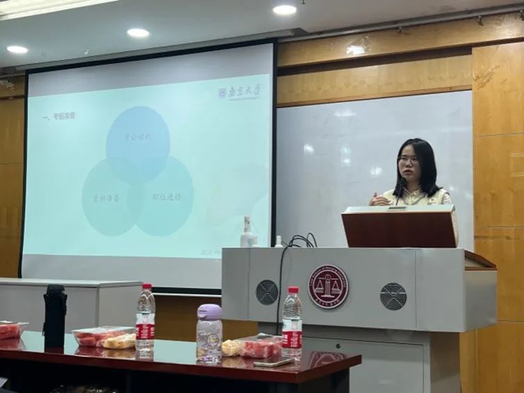 永葆南法廉洁心,走好法学职场路。举办“职点迷津,引航未来”就业经验分享会,邀请即将就职于最高人民检察院、江苏省高级人民法院、中国(上海)自由贸易试验区临港新片区管理委员会、宿迁市中级人民法院和华为技术有限公司等单位的6位学长学姐分享求职就业经验,介绍简历制作技巧、考公经验和心态调整方法。法学院团委书记唐赟老师参加了分享会并详细讲解了最新的就业情况。就业经验分享会旨在帮助同学们了解当前就业形势,力求让同学们提高纪律意识、坚守纪律法律底线,获取一手就业信息,明晰就业方向,精进求职技能,提高就业竞争力。