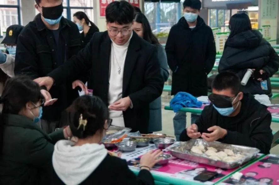 冬至前夕包饺子活动,设置蒙眼包饺子、计时包饺子、饺子大胃王等多样化比赛环节,体会动手乐趣,丰富文化生活。