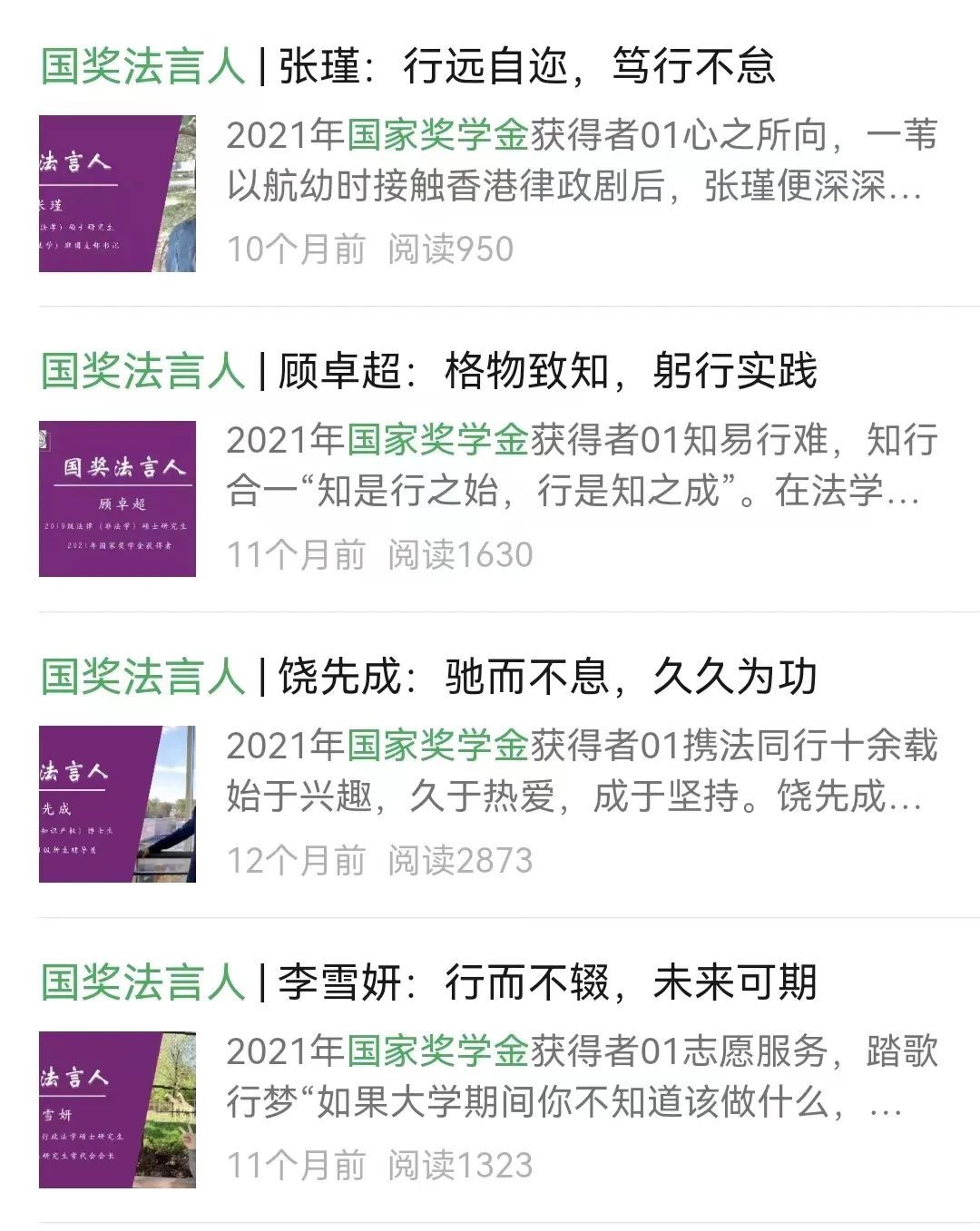 访谈法学院国奖获得者,通过问题征集、推文发布的互动形式,既给国奖获得者提供展示风采的平台,也给广大研究生开放答疑解惑的渠道。