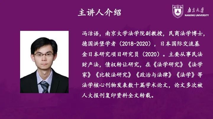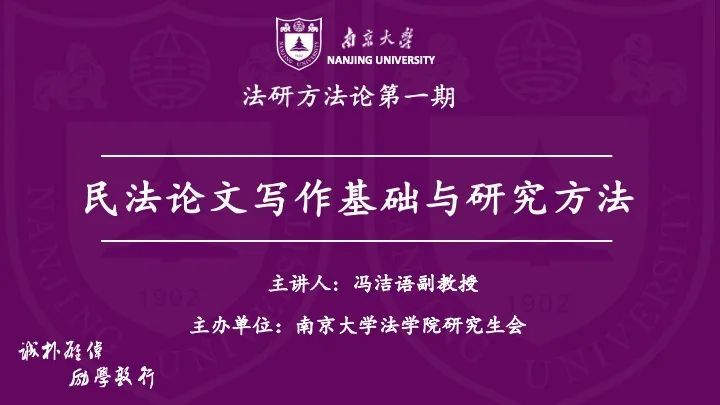作为研究生学习过程的重要任务,法学阅读与论文写作对于同学们的科研能力提出了更高的标准与要求。为了帮助大家攻克学术道路上的“拦路虎”,筑牢科研能力中的“压舱石”,11月30日晚19点,南京大学法学院研究生会举办“法研方法论”系列活动第一期,邀请到法学院副教授冯洁语老师为大家进行“民法论文写作基础与研究方法”讲座分享,百余位同学热情参与。让我们一起来回顾冯老师的独家科研方法吧!