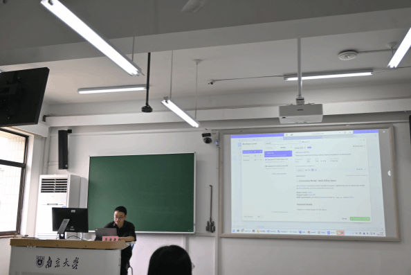 2025年5月25日下午2:00,“AI赋能,智启新程——法律人的AI使用指南”专题讲座在浦口校区浦Ⅰ-407教室圆满举办。南京通达海科技股份有限公司人工智能总监吴康康通过系统讲解、案例实操以及现场答疑等环节,为法学专业学生提供前沿技术认知与实用技能指导。南京大学法学院党委组织员遇苏老师出席本次活动。