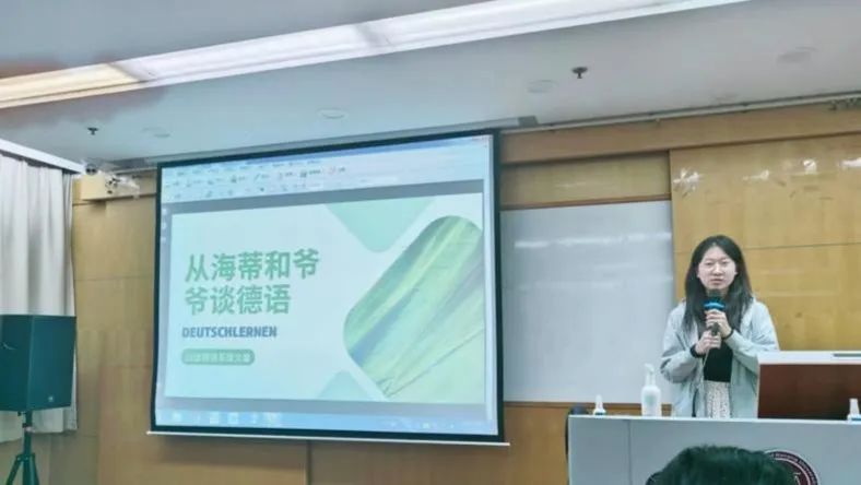 活动的第二个环节是嘉宾德语教学。我们邀请到南京大学2021级德语系本科生章文馨同学作为活动嘉宾,为同学们做简单的德语教学。章文馨同学的德语专业功底十分扎实,她从初中就开始接触、学习德语,曾获全国大学生德语辩论赛三等奖、全国“德语之星”演讲比赛二等奖。