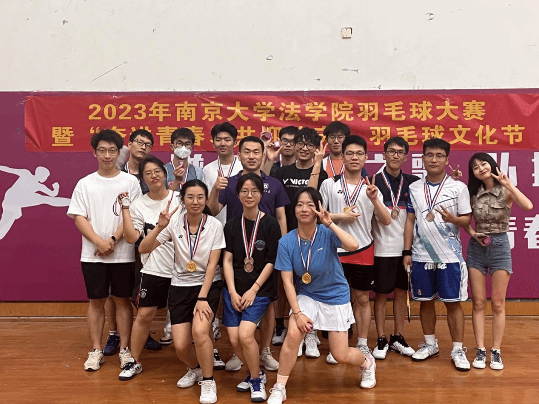 在各位同学与工作人员的全力配合下,本次2023年法学院羽毛球大赛暨“奋进青春,共迎校庆”羽毛球文化节活动圆满落下帷幕。本次比赛不仅为大家展示了法学院学子追求卓越、积极向上、勇于拼搏的奋斗精神,也让我们看到了作为新时代青年特有的青春力量,希望同学们能够携手同进,在竞技中博出精彩!感谢各位参赛选手们为我们呈现的这场精彩绝伦的比赛,也感谢所有老师同学对本次羽毛球比赛的大力支持。