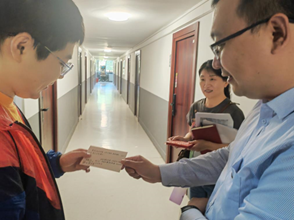 在走访宿舍的过程中,马书记亲切地问候同学们,了解同学们目前在学习、生活中遇到的问题,为同学们答疑解惑、解决困难,并且提出宝贵建议。马书记详细询问了同学们的学习情况,鼓励大家积极参与课堂讨论和学术活动,不断提升自己的专业素养。同时,马书记还关心同学们的生活状况,询问了宿舍设施的使用情况,了解大家的生活需求。
