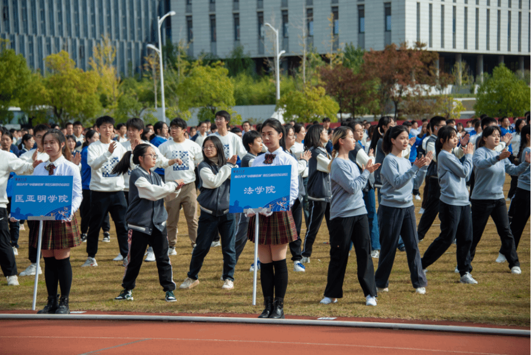 开幕式过后,法学院广播操方队以饱满昂扬的精神风貌完成了第九套广播体操的汇演。随着广播操的音乐节奏,同学们的动作充满了力量与活力。每一次伸展,每一次踢腿,都是对青春活力的最好诠释。