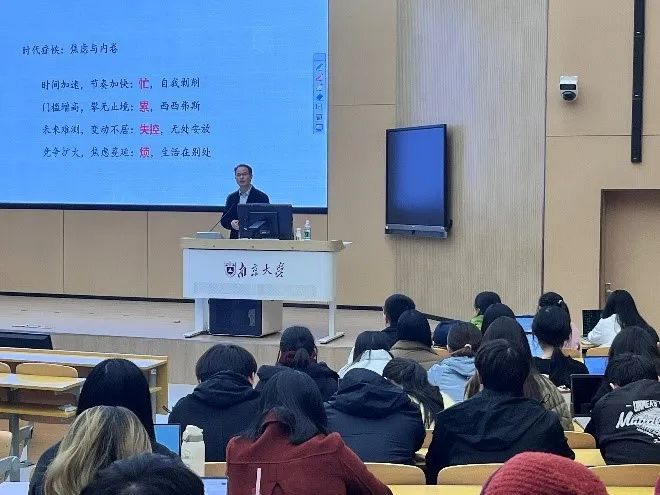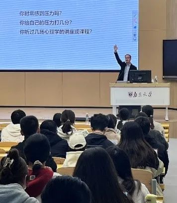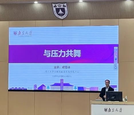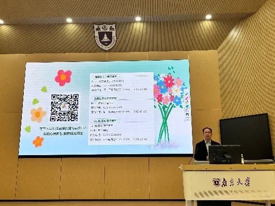 最后,成雪峰介绍了南京大学心理中心提供的线下心理咨询服务与线上心理支持,鼓励同学们遇到问题时及时寻求帮助。