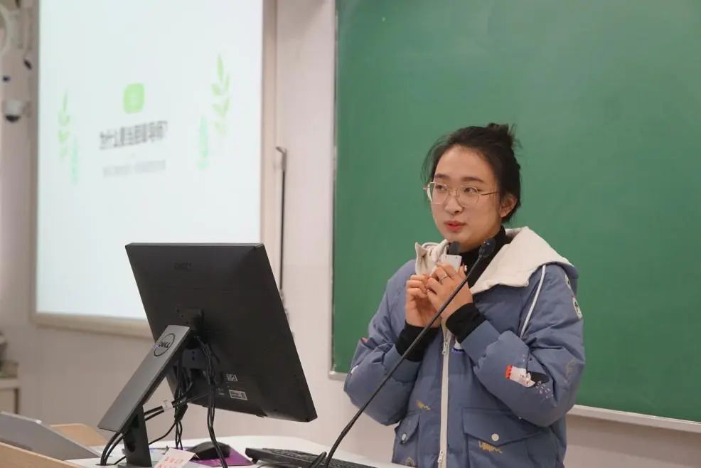 优秀朋辈导师熊子扬同学分享了担任朋辈导师的经验与建议。她表示,朋辈导师要明确自身定位与职责,增强使命感与责任感,可以从学业、学工、生活、信息资源获取等多个方面给予同学们帮助,将课程资料提前整理好与学弟学妹们分享。同时,多位朋辈导师之间也可以联合开展系列活动,发挥不同专长,在最大程度上为同学们提供帮助。