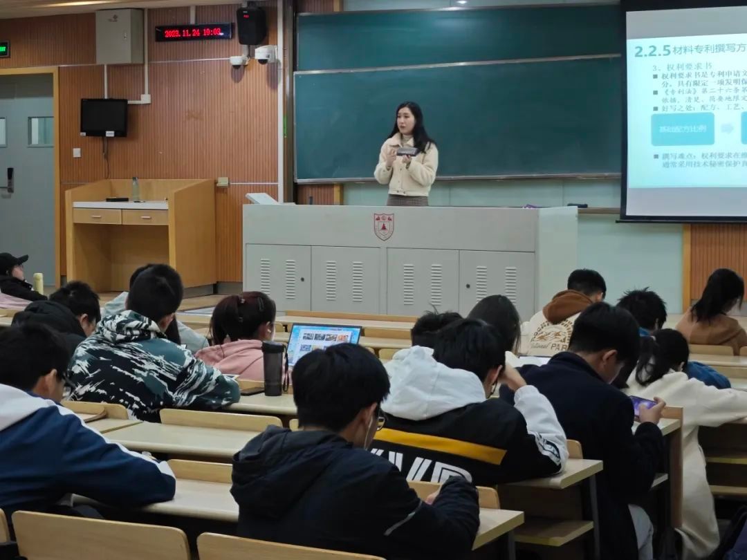 接下来,志愿者详尽讲解了专利申请的准备材料、申请流程、撰写方法等,具备高度的可操作性,为同学们保护自己的知识成果提供了切实可行的指导。