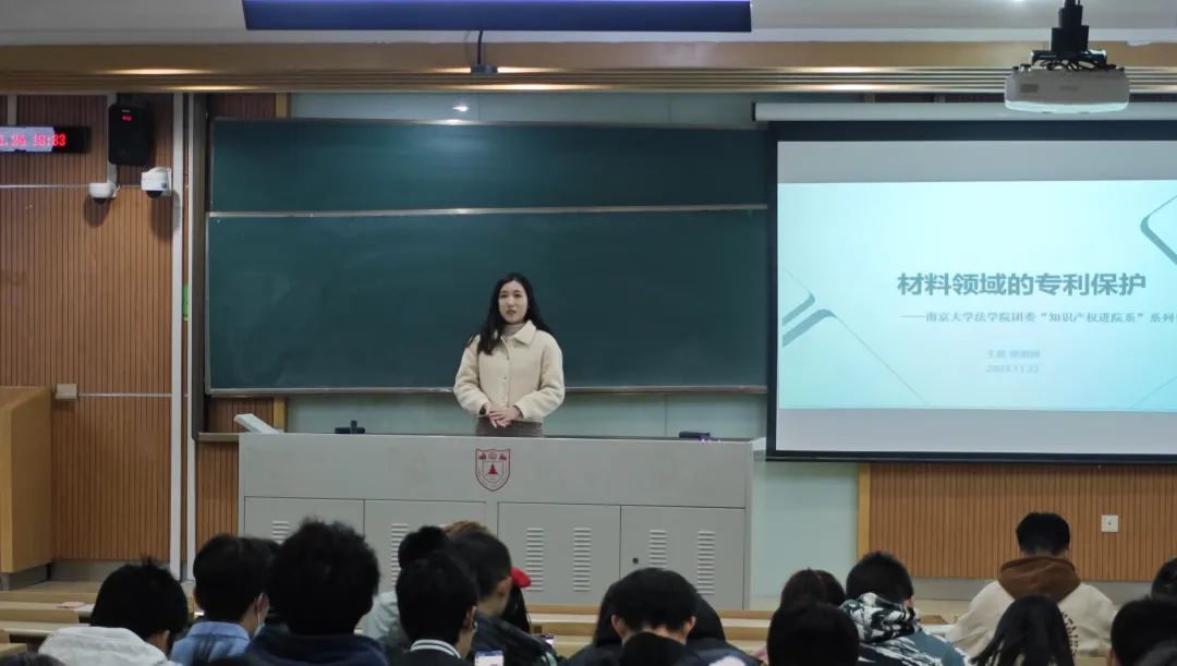 材料制备高精尖,知识产权要当先。为了进一步增强理工科同学对于知识产权保护的理解与重视,11月24日晚,南京大学法学院团委志愿服务部走进南京大学现代工程与应用科学学院,开展了“法言智汇”之“知识产权进院系(现工院篇)”的活动。在本次活动中,2023级法律硕士王晨同学围绕“材料领域的专利保护”这一现工院同学感兴趣的法律问题,进行了细致生动的普法宣讲。