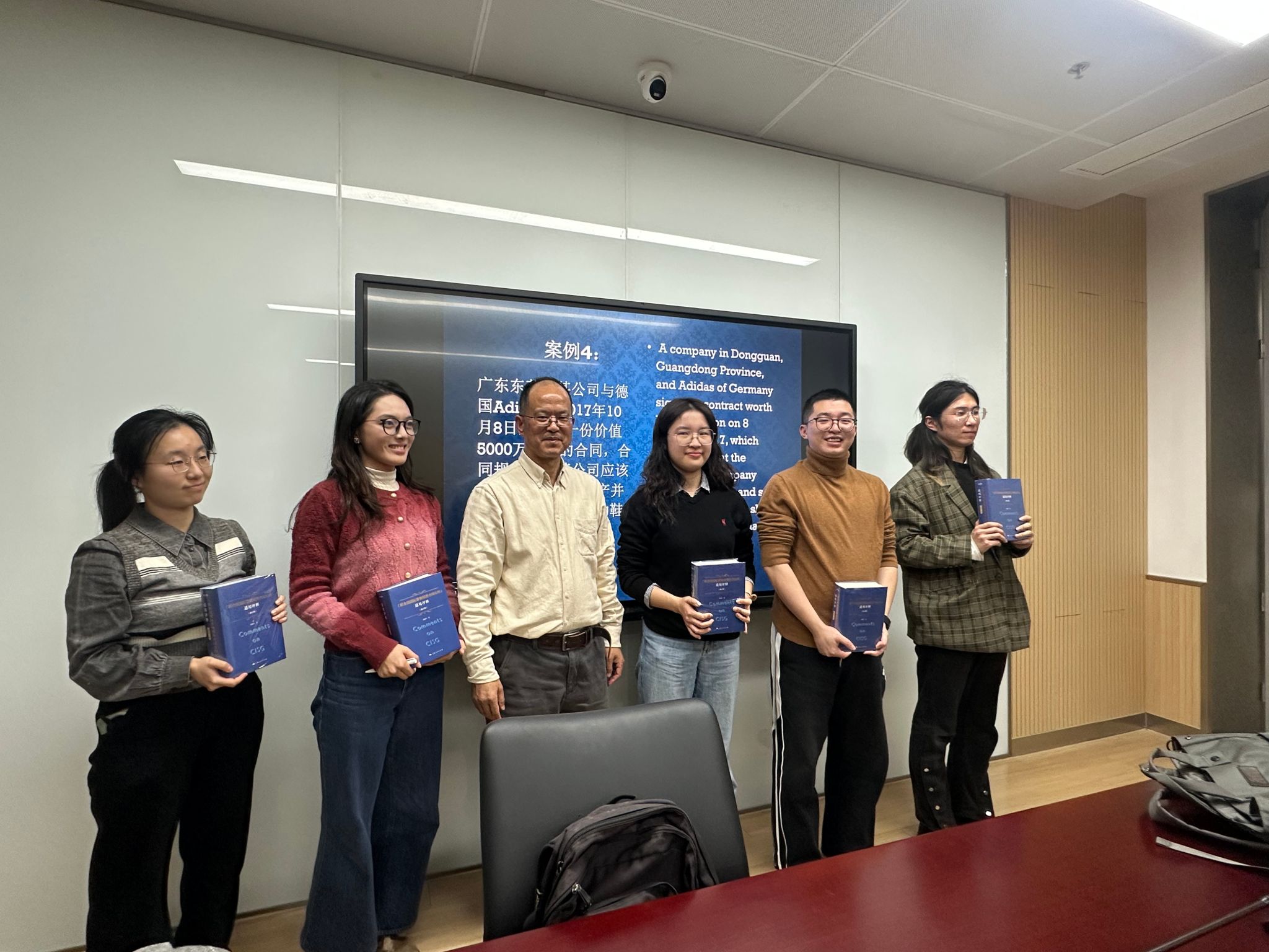 讲座的最后,高旭军教授向现场积极互动的同学赠送其新书《<联合国国际货物销售合同公约>适用评释(修订版)》以资鼓励。本场讲座主题鲜明、内容丰富,兼具理论深度与现实关怀,从条约解释的角度分析CISG的解释适用问题,极大地深化了在场师生对CISG条文理解与适用技巧的掌握。讲座在热烈的掌声中圆满结束。
