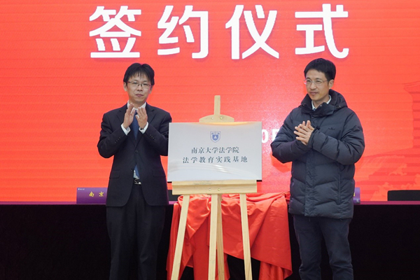南京大学法学院院长叶金强和苏州资产管理有限公司党委副书记翁浩为“南京大学法学院法学教育实践基地”授牌。