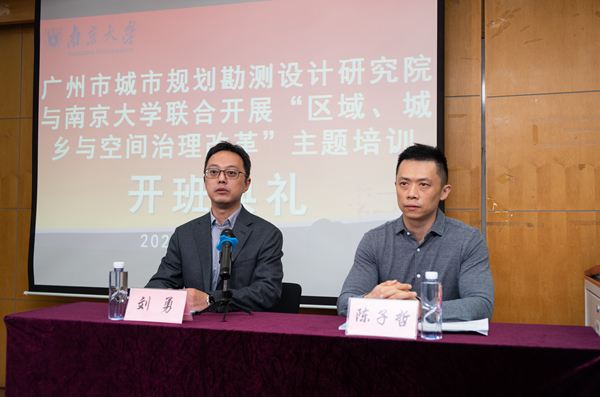 2020年10月10日,广州市城市规划勘测设计研究院与南京大学联合开展“区域、城乡与空间治理改革”主题培训班在南京大学鼓楼校区开班,共有56名学员参加此次培训。广州市城市规划勘测设计研究院人事部部长陈子哲,南京大学法学院副院长刘勇出席了开班典礼并分别发言。