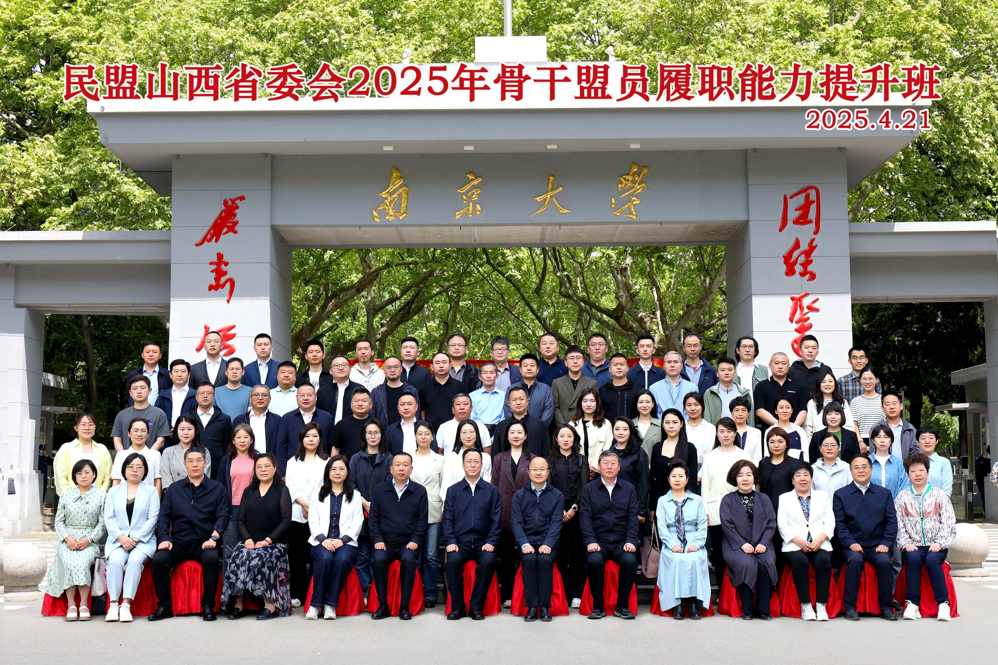 2025年4月21日上午,民盟山西省委会2025年骨干盟员履职能力提升班开班仪式在南京大学鼓楼校区举行。全国政协委员、山西省政协常委、民盟中央常委、民盟山西省委会主委王书红,南京大学法学院党委书记蒋恩铭出席仪式并讲话。南京大学法学院卢苏海主持开班式,民盟山西省委会2025年骨干盟员履职能力提升班全体学员参加活动。