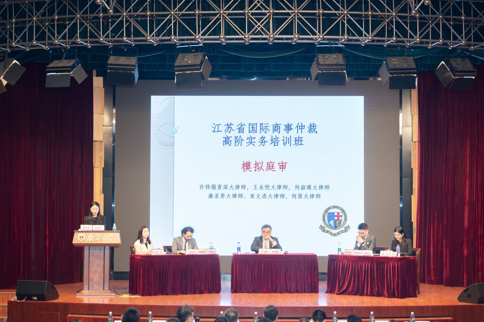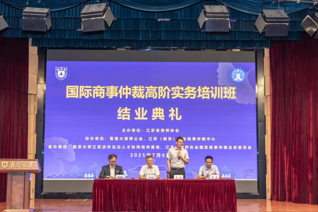 2025年7月3日-6日,由江苏省律师协会主办,南京大学江苏涉外法治人才协同培养基地、江苏省律师协会国际商事仲裁业务委员会承办,香港大律师公会、江苏(南京)国际商事仲裁中心协办的“国际商事仲裁高阶实务培训班”在南京大学鼓楼校区举行。此次高端涉外法治人才培训项目,邀请了来自香港与内地的15位知名学者和实务专家授课,57名江苏优秀律师和10名江苏优秀仲裁员参训。培训课程中的模拟仲裁庭审环节,吸引了近200名我校师生和法治实务工作者旁听。