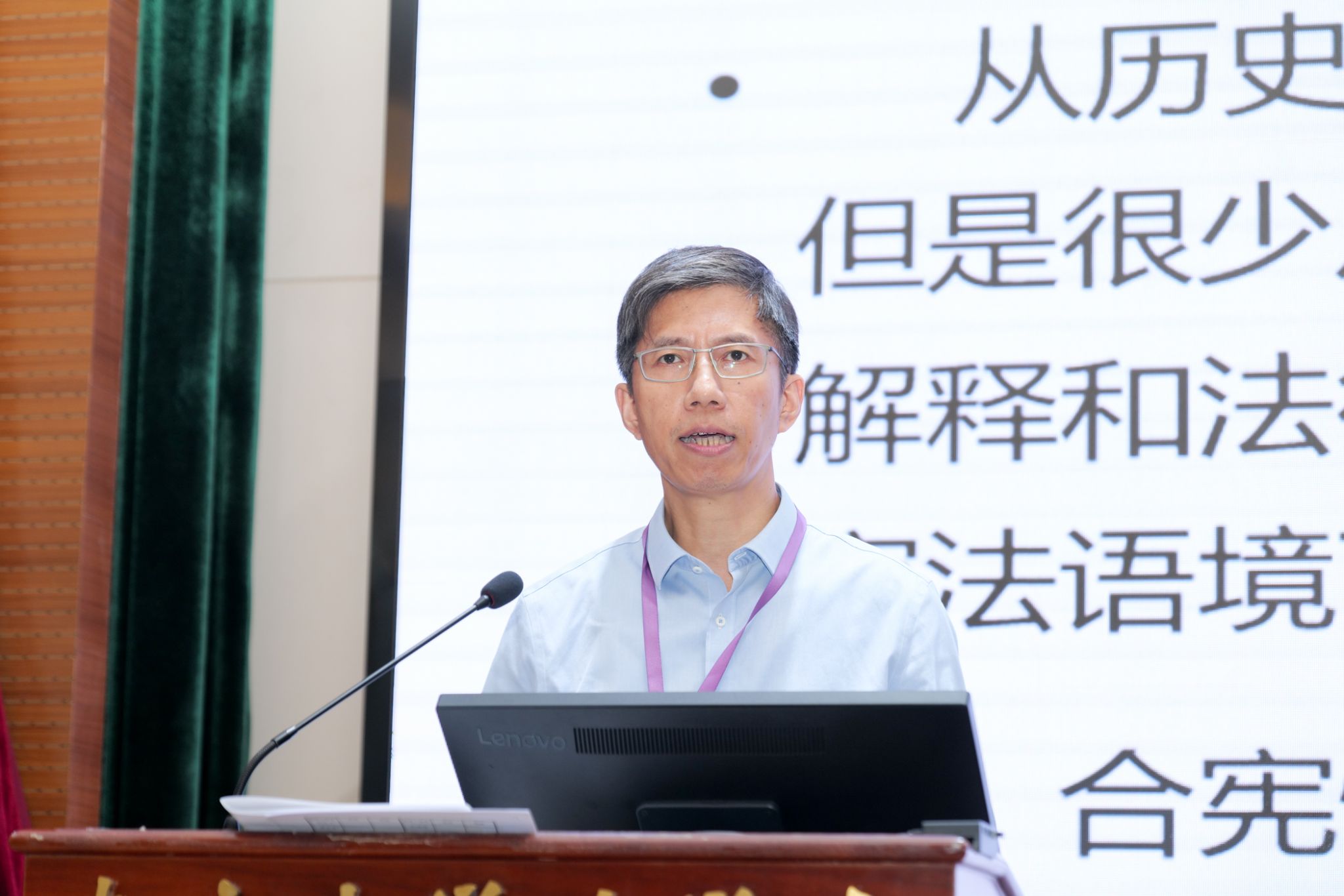 副院长、教授上官丕亮以《法律适用中的宪法全面实施》为题作主题报告。