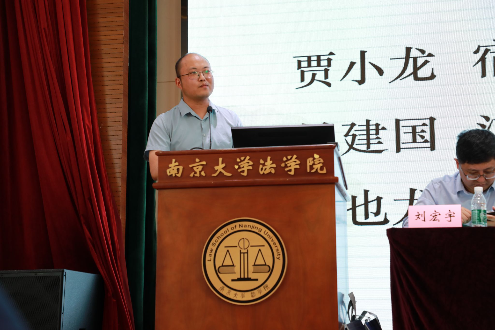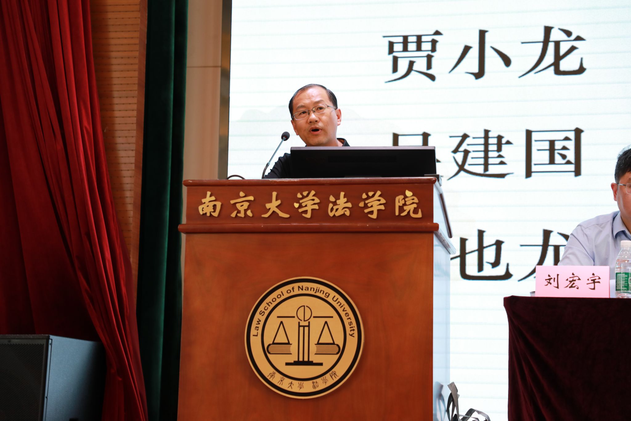 江苏省法学会研究处处长吕复栋宣读省法学会批复。
