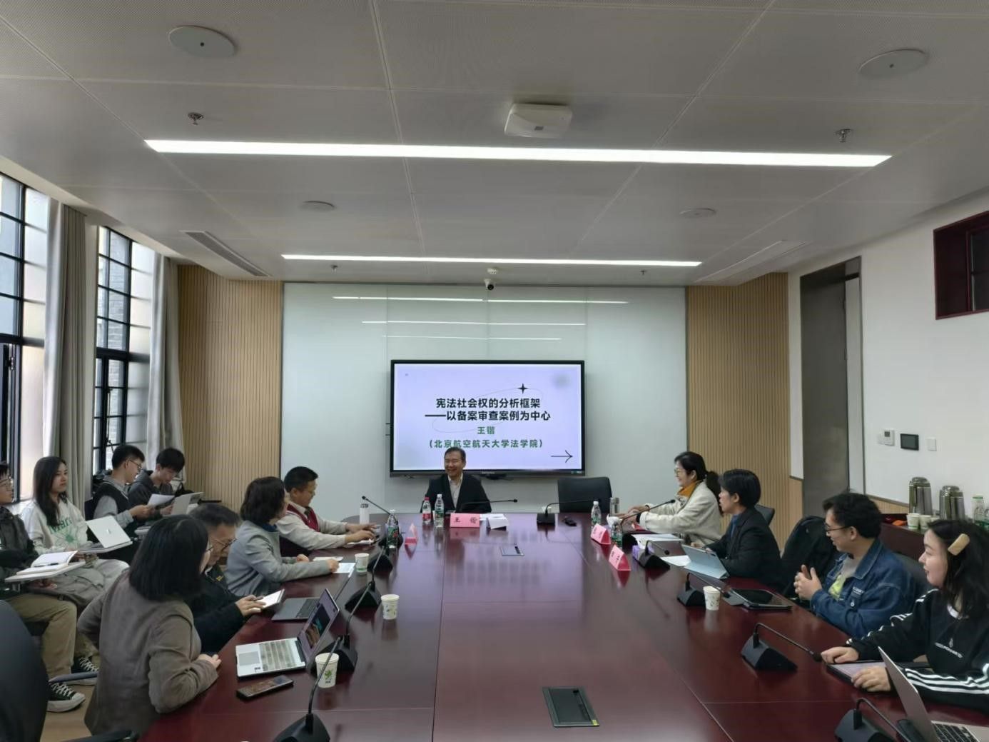 2024年10月29日上午,应我院邀请,北京航空航天大学法学院的王锴教授莅临南京大学鼓楼校区,为我院师生举行了主题为“宪法社会权的分析框架——以备案审查案例为中心”的学术讲座。本次讲座由我院肖泽晟教授主持,田芳副教授、张慰副教授与谈。参加讲座的我院老师还有蔡琳副教授、李晴副教授、白云锋副教授、姜秉曦助理教授、金健博士等。