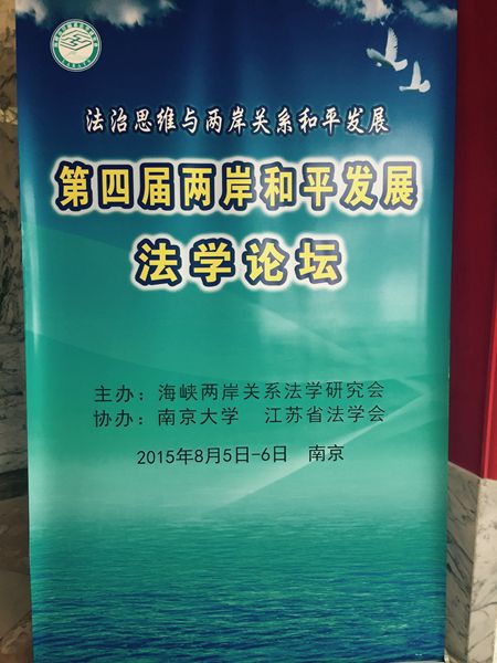 2015年8月6日,第四届两岸和平发展法学论坛在南京闭幕。南京大学副校长、江苏省政协副主席程崇庆主持闭幕式。海峡两岸法学交流协会理事长曾勇夫,海研会副会长、中国法学会副会长张苏军先后致辞。